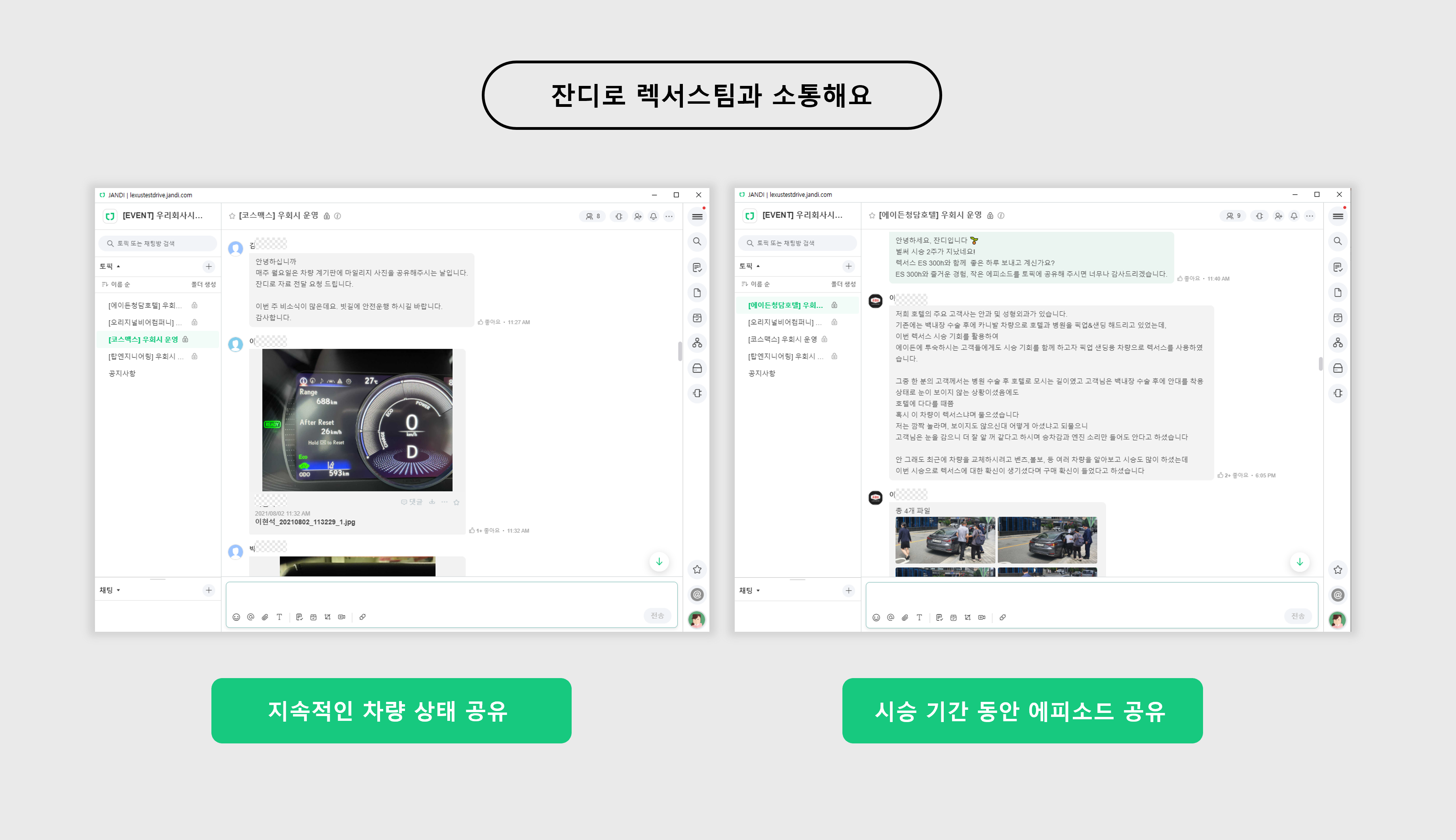 차량 인도 이후에도 잔디에서 지속적인 차량 상태 공유하며 소통하였습니다. 정해진 일자에 시승 담당자께서는 계기판을 공유해주시고, 이를 엘엔티 렉서스팀에서는 꼼꼼히 기록하셨습니다. 뿐만 아니라, 시승 기간 동안 일어난 에피소드와 다양한 이야기들을 공유해주셔서 더욱 의미 있는 기간이었던 것 같습니다.