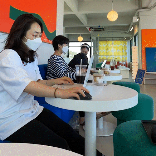 4박 5일간 제주로 워케이션을 떠난 잔디 마케팅팀은 Grace, Taron, Peggy, Rian, Ash 총 5명의 마케터가 모여 잔디로 고객을 끌어들이고 있습니다. 비대면 근무에 특화된 협업툴을 만드는 회사에 다니고 사회적 거리두기 4단계가 시행된 후부터 50% 재택근무를 시행했기 때문에 이미 사무실 근무와 재택근무를 병행하는 하이브리드 워크에 너무 익숙한 사람들이기도 합니다. 하이브리드 워커인 우리가 한곳에 모여 일했던 건 너무 오래전 장면이 됐습니다. 오랜만에 멤버 모두가 모여서 일한다는 설렘도 있었지만, 걱정도 많았던 게 사실입니다. 워케이션은 처음이라서요. 일하는 시간은 어떻게 조율하고 삼시 세끼는 어찌 해결할지 고민했습니다. 혼자만의 시간 확보에 대한 걱정도 있었고요.
