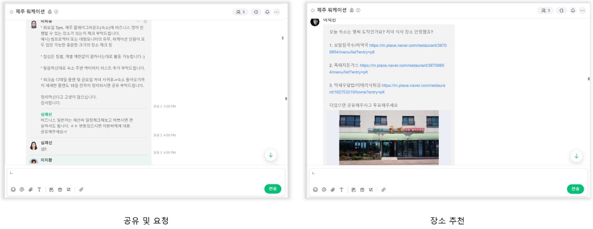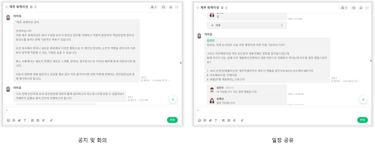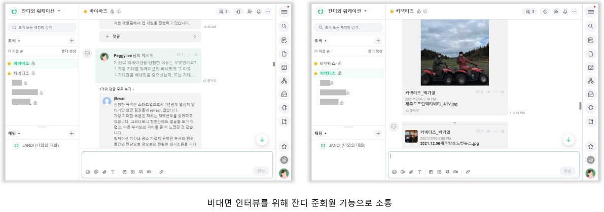 – 빠른 공유🔗: 워케이션 동안 근무시간을 조정해 업무를 많이 진행했어요. 이에 서로 업무시간이 다르다 보니 진행된 업무를 즉각 공유했어요. 그 외에도 다양한 잔디 기능은 업무에 차질 없도록 많은 도움이 되었어요.