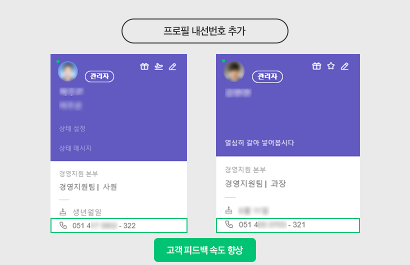 아날로그로 관리하던 내선 번호를 잔디의 조직도와 프로필 기능을 활용해 디지털화해 업무 생산성을 높였습니다. 잔디로 일하기 전에는 표로 만든 각 팀원의 연락처와 내선 번호를 프린트해 책상 주변에 붙여 확인했습니다. 직원 수가 매년 증가하면서 내선 번호를 찾고 전화를 연결하는 시간이 길어졌는데요. 이를 해결하고 고객들에게 빠르게 피드백을 하기 위해 잔디의 조직도를 활용하고 있습니다. 잔디의 조직도나 검색창에서 구성원의 이름을 검색해 클릭하면 프로필에 담당자의 전화번호, 휴대전화, 메일 등의 정보를 확인할 수 있습니다. 씨넷은 담당자 전화번호 칸에 따로 내선 번호를 표기해 필요한 담당자 연락처를 신속하게 찾아 연결합니다. 이제 상대방이 담당자를 기다리는 시간을 줄일 수 있게 됐습니다.