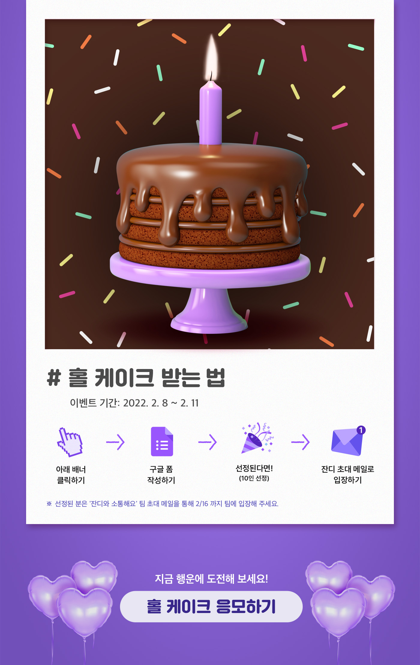 이벤트는 2/8~2/11 진행될 예정이며, 아래 응모하기 버튼 클릭해주세요!