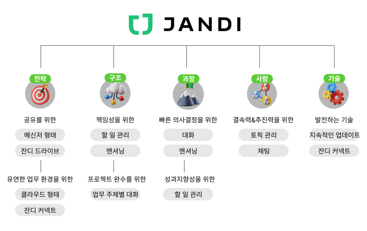 더 구체적인 이해를 위해 협업 도구 잔디의 주요 기능을 위의 사항에 적용해보았습니다 .