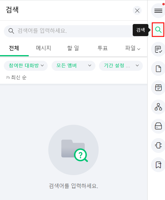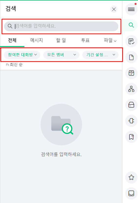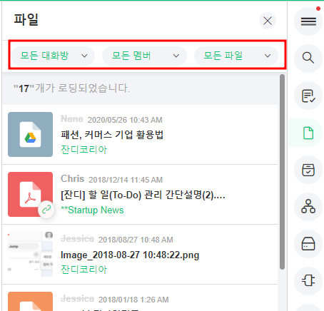 - 검색 필터 : 대화방, 멤버, 파일 타입