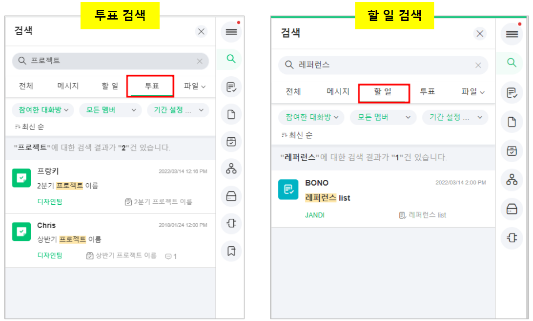1-3. 메시지 뿐만 아니라 할 일, 투표, 잔디 커넥트로 검색 가능해요