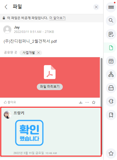 검색 결과를 클릭하면 파일에 달린 댓글도 확인이 가능합니다😊
