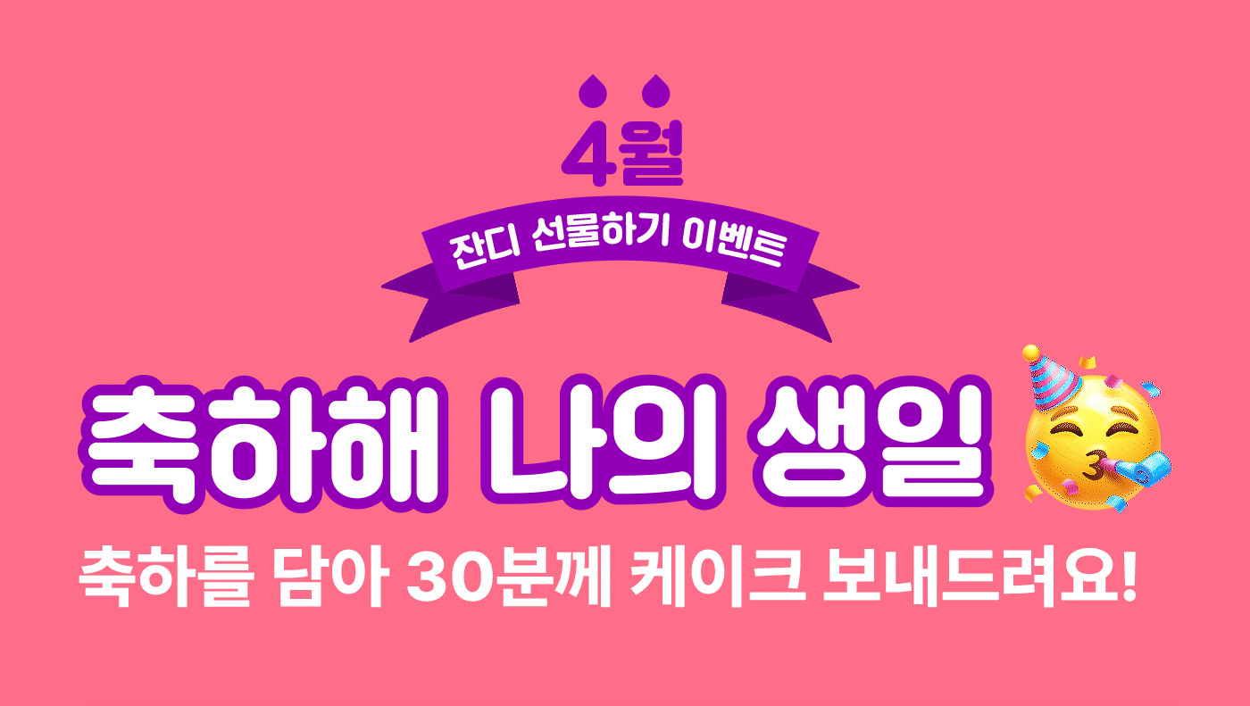 행복 가득한 4월이 되길 바라며, 다음 달 잔디 선물하기 축하 케이크 이벤트에서 또 만나요!