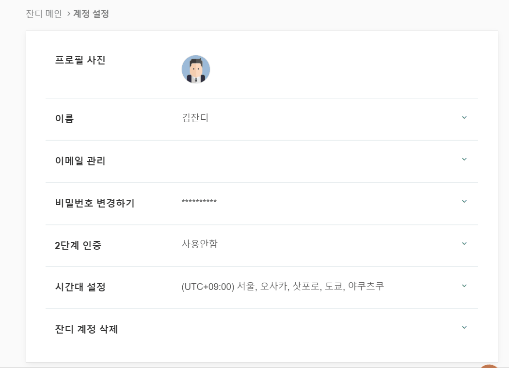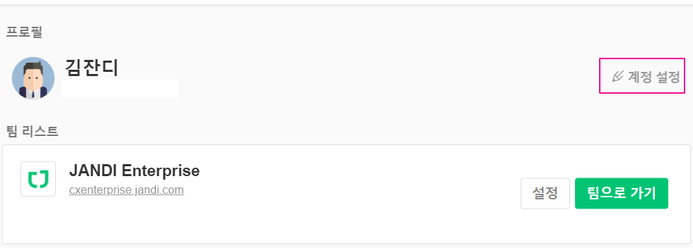 - 잔디 메인 > 계정 설정을 클릭합니다.