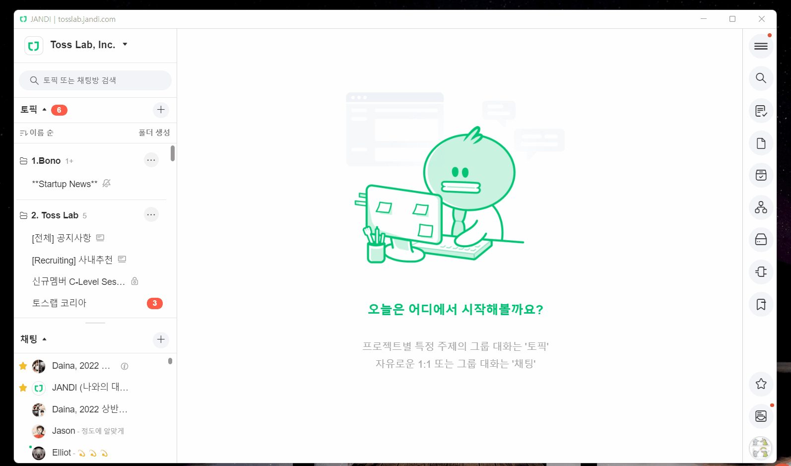 업무를 하면서 다양한 대화방만 계속 볼 수도 없고..