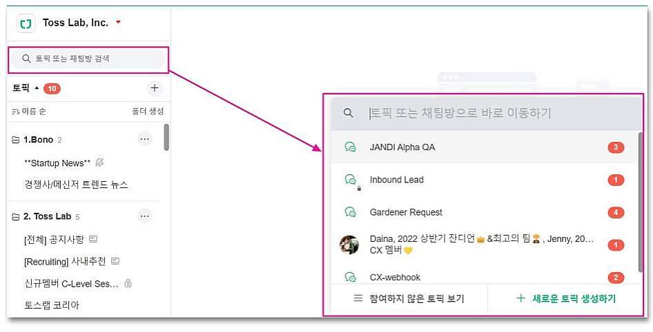 1. 토픽/채팅 검색 (JUMP)