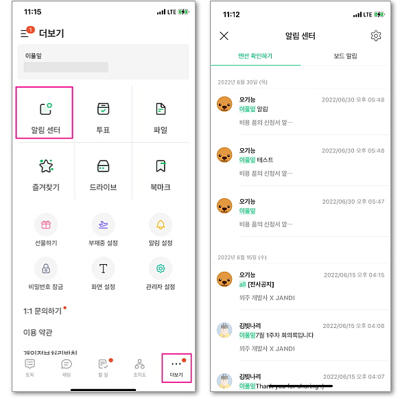 - 또롱또롱 울리는 알림 속에서, 특히 나에게 지정된 메시지를 빠르게 확인하는 방법이 잔디에 있습니다.