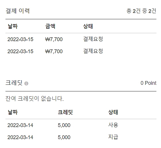 2. 결제 이력과 크레딧 확인