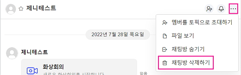 - Enterprise plan을 이용하신다면 [1:1 대화 삭제 허용] 기능을 통해 1:1 대화 채팅방을 삭제할 수 있습니다.