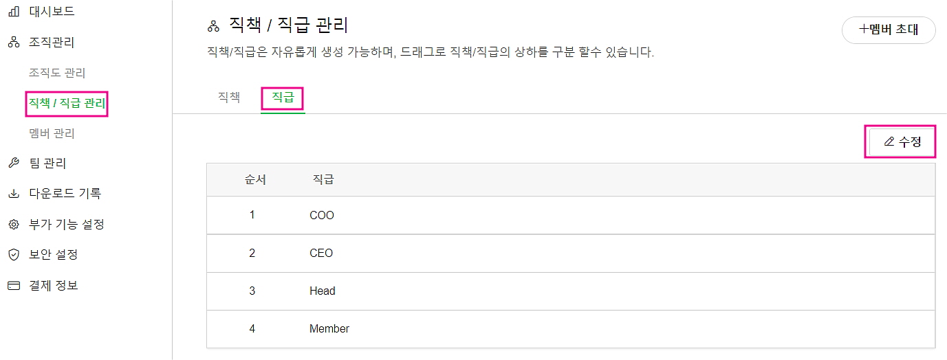- [직급] > [수정]에서는