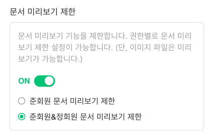 - 멤버 권한별로 문서 미리보기 제한 설정이 가능합니다.