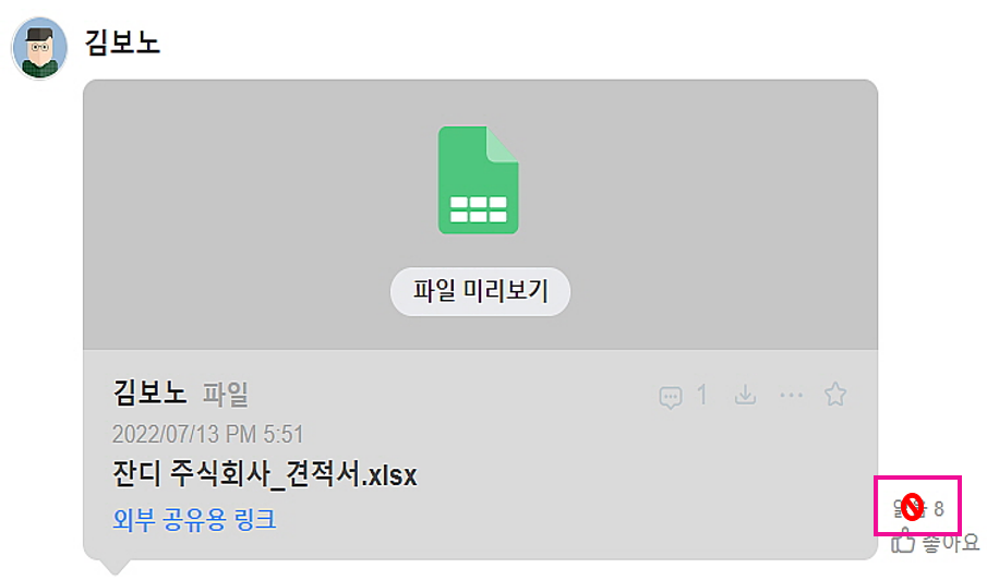 [내가 작성한 메시지] : 멤버가 올린 메시지 옆에 ‘읽음’을 선택했을 때 활성화가 되지 않습니다.