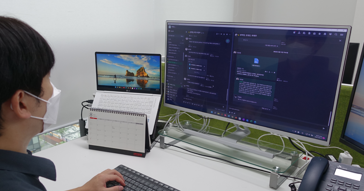 도입 초창기에는 메일, 그룹웨어, 잔디 세 가지를 업무에 사용했으나, 현재는 잔디에 구현할 수 있는 업무는 대부분 잔디로 일원화하여 사용하고 있습니다. 점차적으로 잔디를 활용도를 높이니 사내에서 주고받는 메일의 수가 급격히 줄었습니다. 또 대부분의 업무를 잔디를 통해 의견을 주고받게 되어 소통의 시간이 빨라졌어요. 그리고 전사 공지, 신입사원 가이드 등 그룹웨어나 서면·대면을 통해 진행했던 업무들이 잔디 토픽방에 구현되어 기존보다 업무의 접근성과 효율성이 높아졌어요. 주제별 대화방을 통해 주 업무, 프로젝트별 관리가 용이해졌고, 잔디 드라이브를 통해 기존에 업무용 노트북에 저장하던 것을 잔디로 옮겨 업무 및 관련 자료를 좀 더 손쉽게 찾고, 관리할 수 있게 됐습니다.