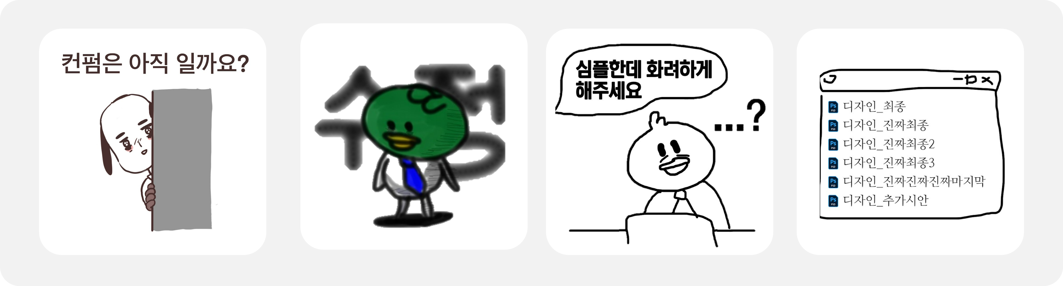 - 최종 피드백: 2차로 완성된 이모티콘에 잔디 팀이 최종 피드백을 전달합니다.