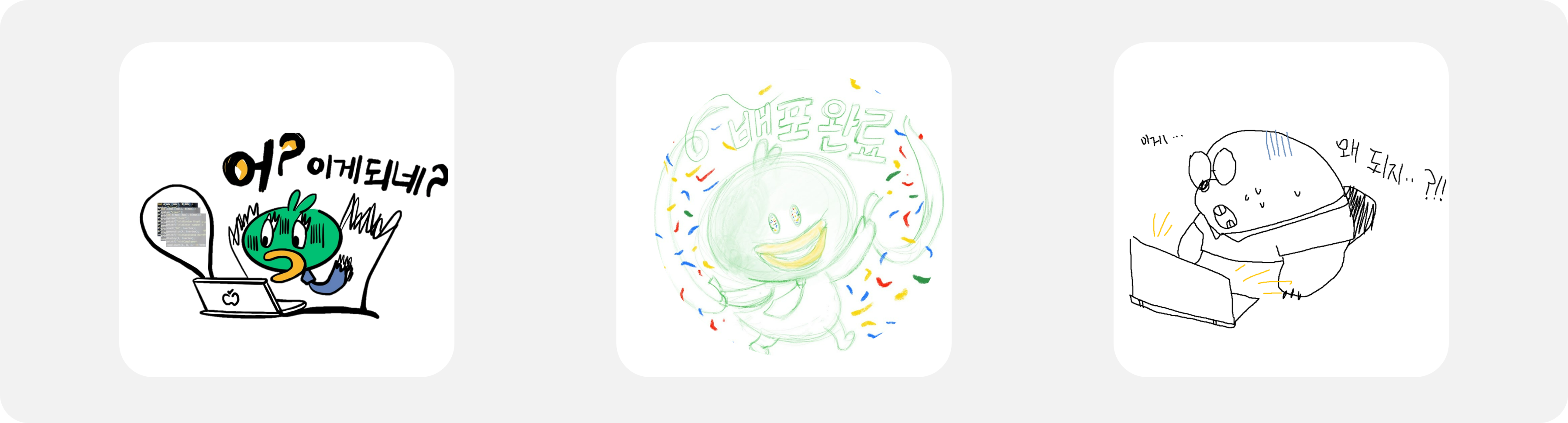 - 1차 피드백: 1차로 완성된 이모티콘에 잔디 팀이 피드백을 전달합니다.