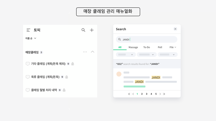 수퍼바이저 업무 특성상 외근이 잦아 매장에서 발생하는 특이사항과 클레임 처리를 순차적으로 처리하는 데 어려움이 있었습니다. 하지만 잔디 ‘클레임 처리’ 토픽에서 본사 구매팀의 즉각적인 클레임 응대를 진행하고 있어 문제가 해결됐습니다. 매장에서 발생한 이슈를 해당 토픽에 공유하면 본사에서 빠르게 확인 후 신속하게 대처 방안을 마련해 응대를 하고 있는데요. 클레임 처리에 관한 업무 이력은 모두 토픽에 남아 있으니 문제를 공유하기 전에 검색을 통해서 빠르게 대응할 수 있습니다. 토픽 자체가 매장 클레임 대응 매뉴얼인 셈입니다.
