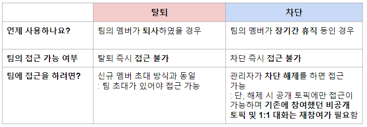 팀 관리자와 퇴사 멤버 모두 변경이 필요하기에 퇴사 프로세스에 꼭 추가하시는 걸 권장 드립니다.