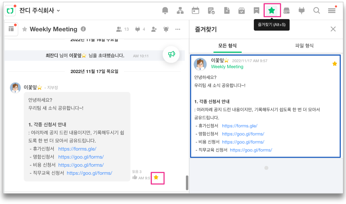 - 팀 북마크 : 구성원 모두에게 공유되는 북마크 리스트