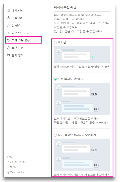 중요한 공지사항을 보낸 후 메시지를 놓친 멤버가 없는지 확인할 수 있는 기능이 있습니다.