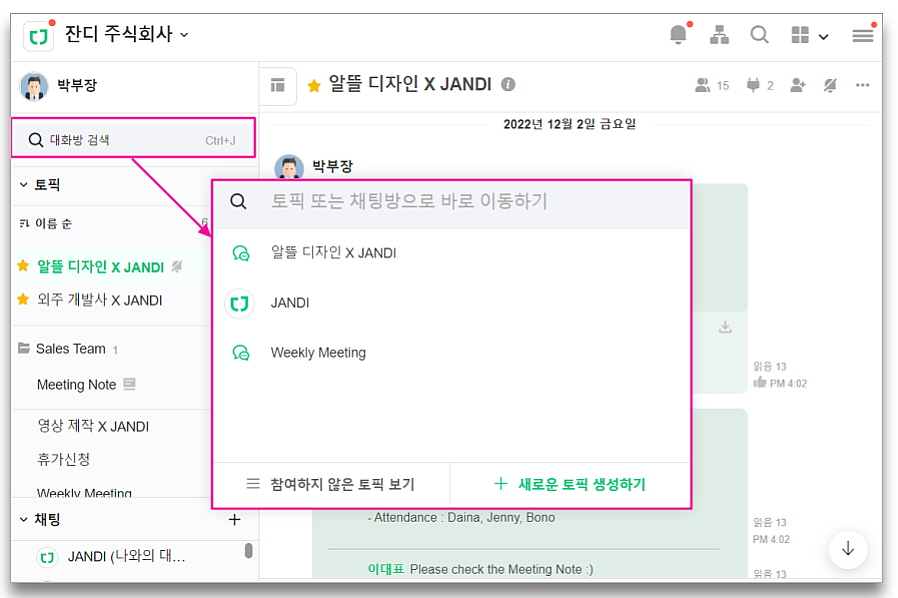 관리하는 토픽이 많아서 스크롤만으로는 원하는 대화방을 찾기에 시간이 오래 걸리는 유저분들에게 추천합니다!