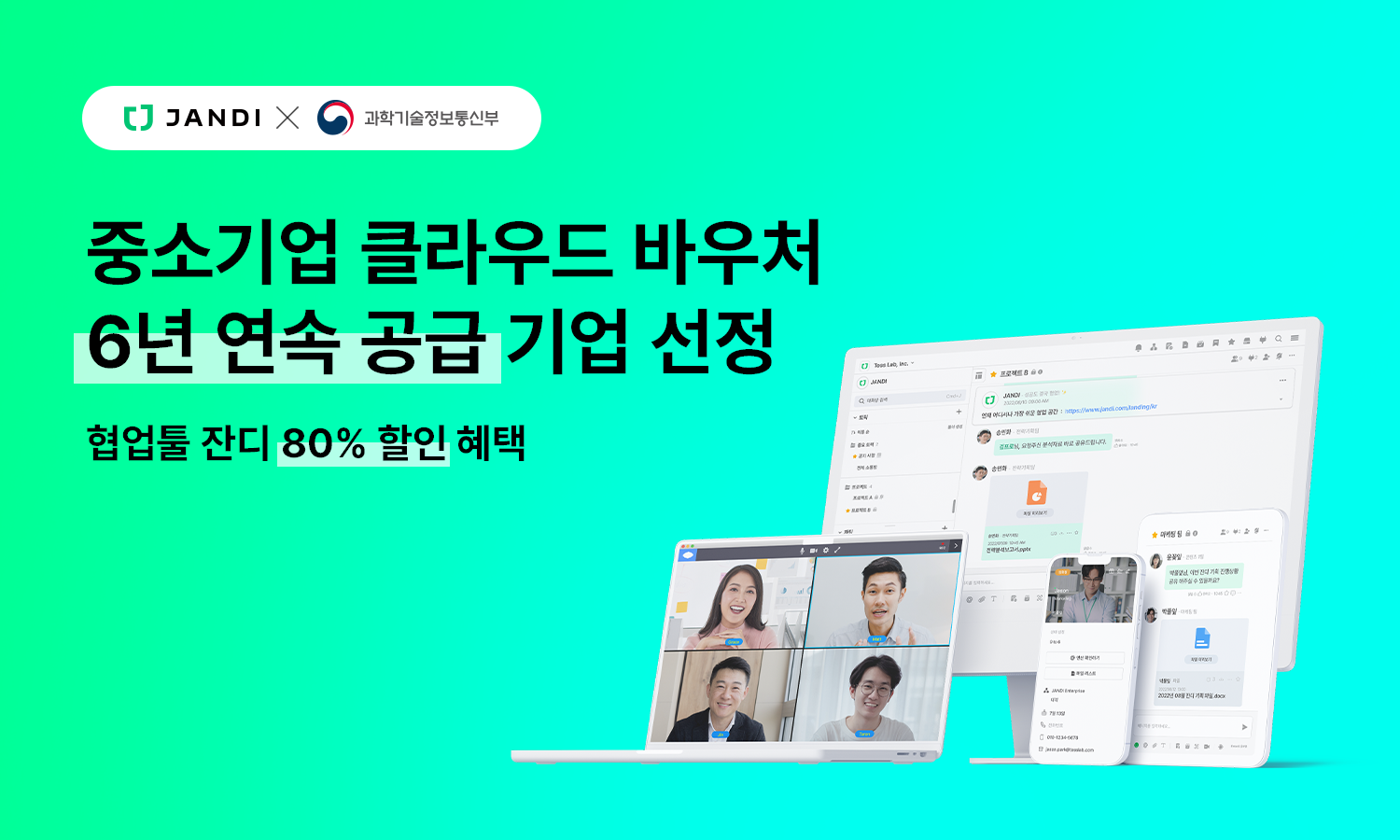 정부지원금을 통해 80% 할인된 가격으로 업무용 협업툴 잔디(JANDI)를 도입하실 수 있습니다.
