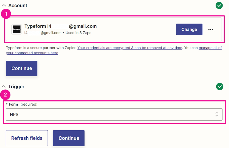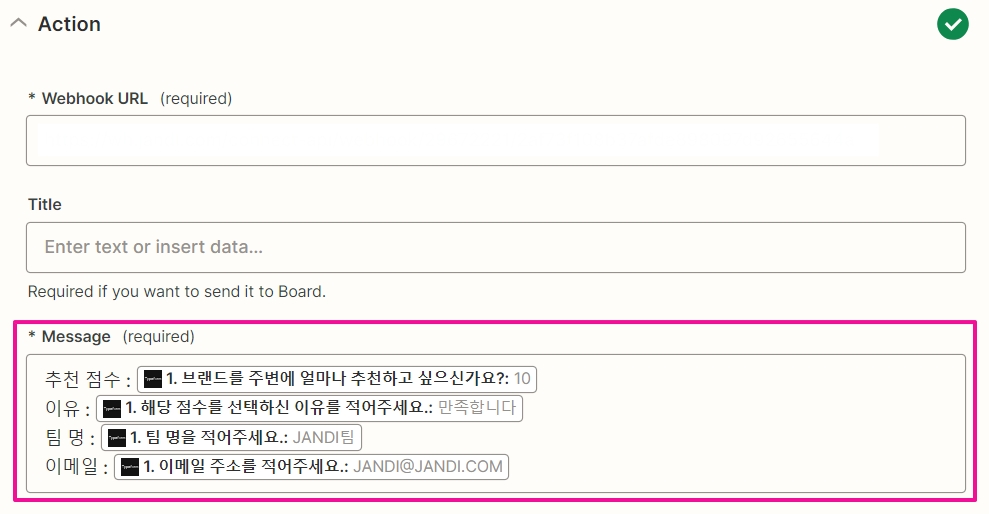 - choose a typeform : 연동하고자 하는 타이폼 제목을 선택