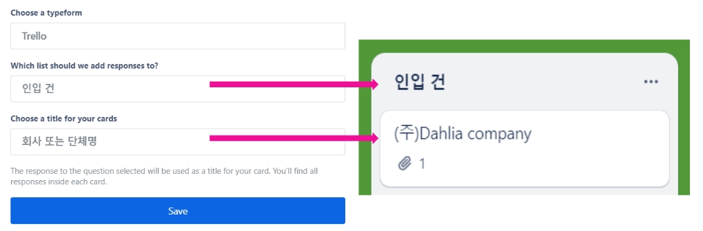 - Choose a title for your cards : 카드 제목으로 설정될 타입폼 항목 선택
