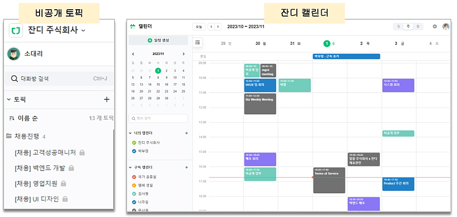 잔디 사용 후 : 각 팀장님과 비공개 토픽에서