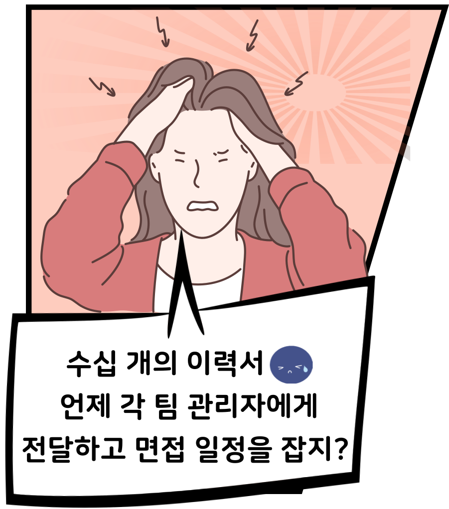 팀장님들의 잔디 캘린더를 확인해서 면접 일정 리스트 체크하면 1차 면접 준비 완료!