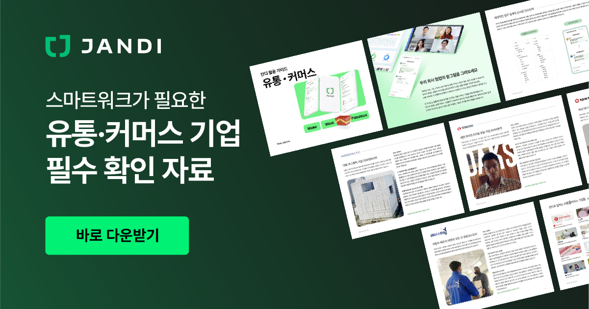 성장하고 있는 유통·커머스 기업이 잔디를 통해 공간 제약이 없이 실시간 소통하고 있습니다. 잔디로 일하는 트렌드세터들의 구체적인 잔디 활용 노하우도 <유통&커머스 잔디 활용 가이드>에서 확인할 수 있어요.