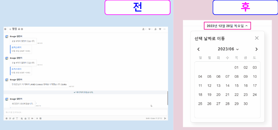 이젠, 대화방에서 날짜 검색만으로 원하는 대화 시점으로 이동 가능해졌습니다.