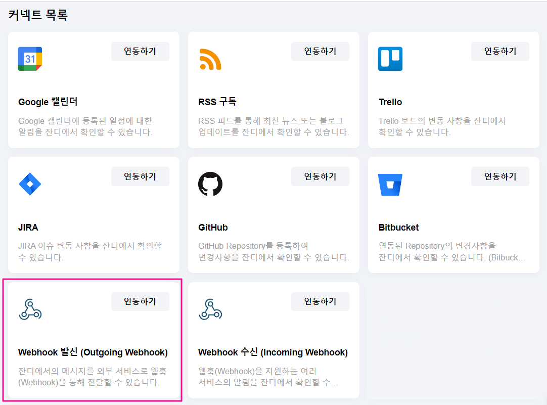 3️⃣ 잔디 커넥트 Outgoing Webhook 생성