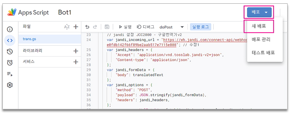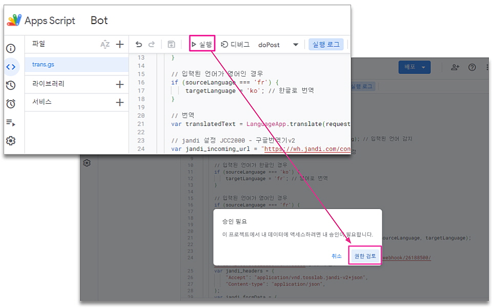 👉🏻[잔디 커넥트] 구글 번역봇 잔디에 연결하기_구글 앱스 스크립트(번역)
