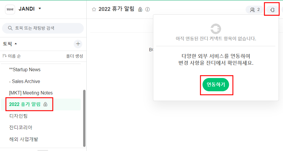 이제 준비 끝! 잔디로 알림을 받을 수 있도록 잔디 커넥트 연결을 하러 가볼까요~??
