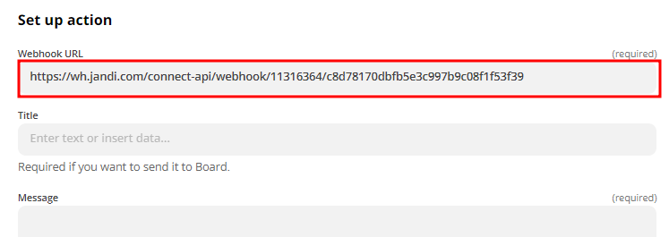 - Webhook URL은 [복사하기] 버튼을 클릭해 클립보드에 저장합니다. (*Zapier 설정 시 Webhook url 필요)
