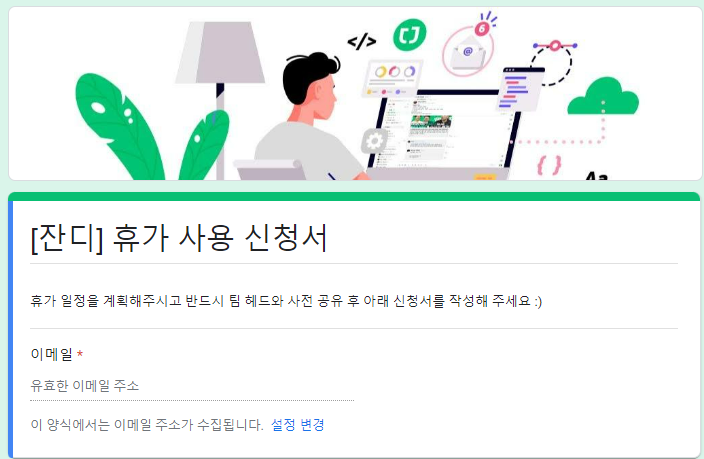 잔디에서는 휴가 신청 양식의 구글 설문지 폼으로 [신청]만 하면, 구글 스프레드시트로 모든 멤버의 연차 신청을 [관리] 할 수 있어요!