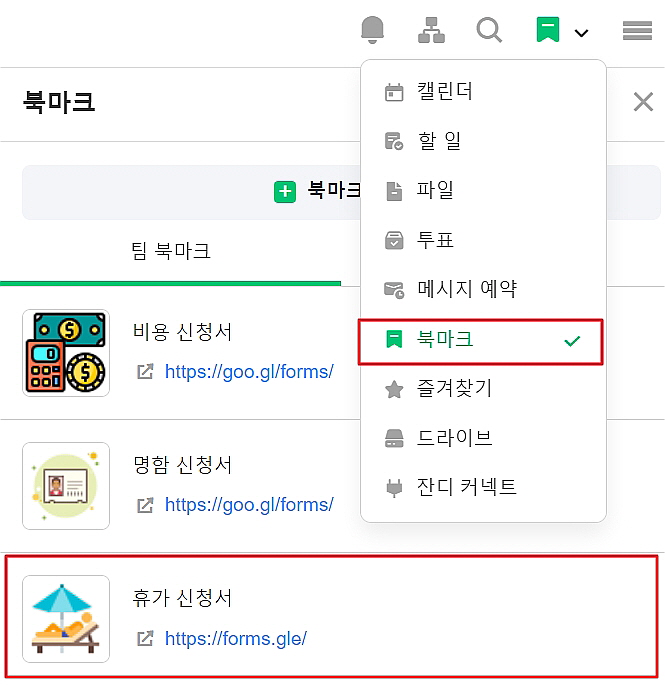 팀 멤버들이 휴가 신청서를 찾아야 하는 번거로움을 줄일 수 있어요. (*유료 플랜에서 제공)