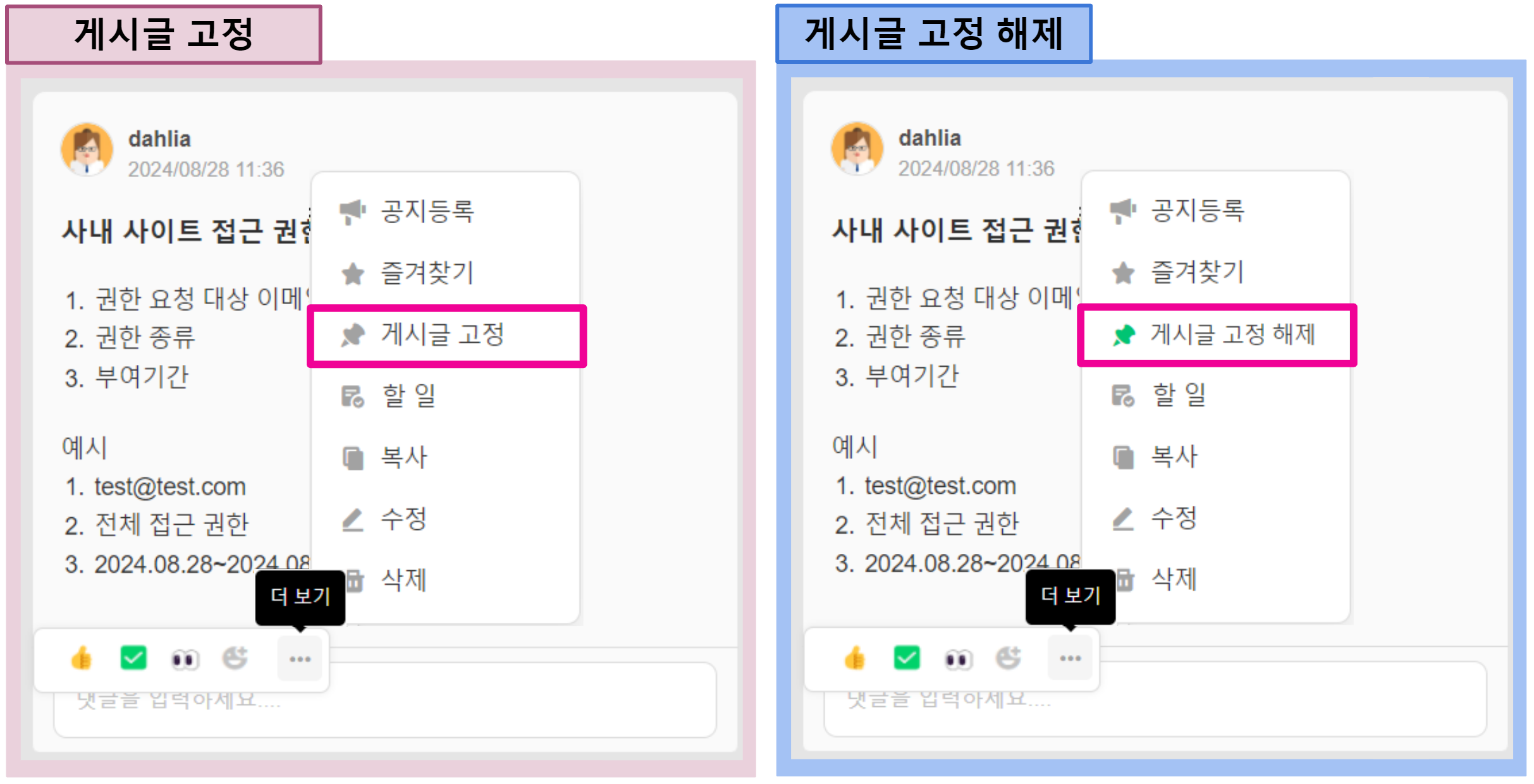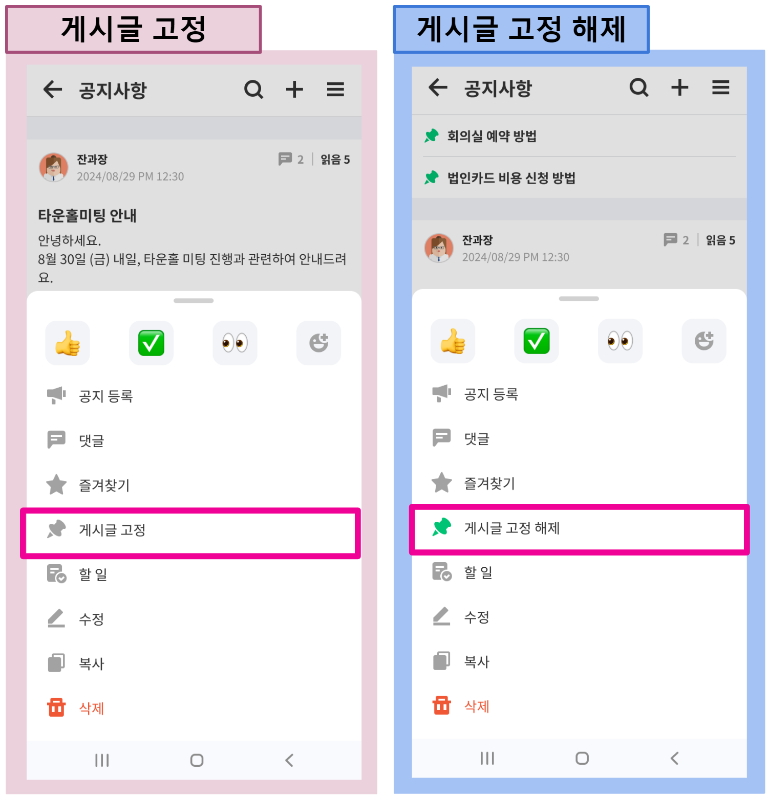 📍게시글 고정/해제 방법