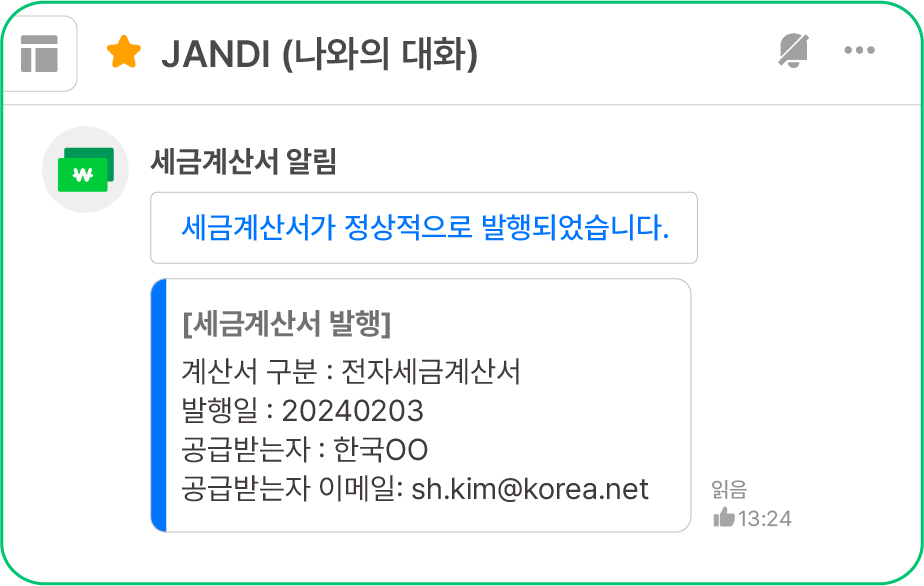4. ‘세금계산서가 잘 발행 되었나?’ 걱정하지 마세요. 잔디가 한 번 더 알려드려요.