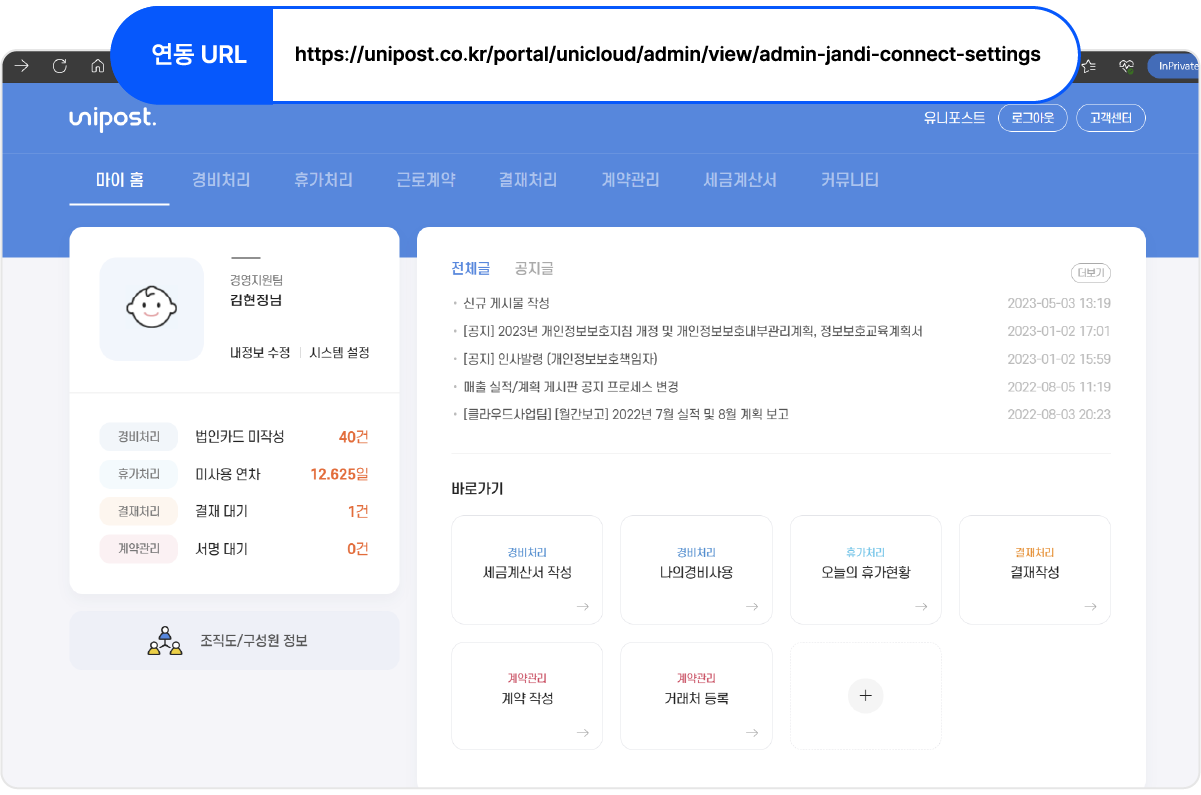유니포스트의 전자결재를 잔디와 연동하는 방법