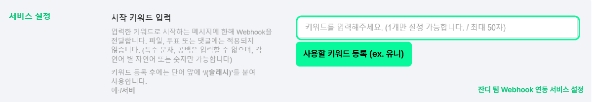 2. 잔디 팀 Webhook 연동 설정 화면 -파라미터 등록
