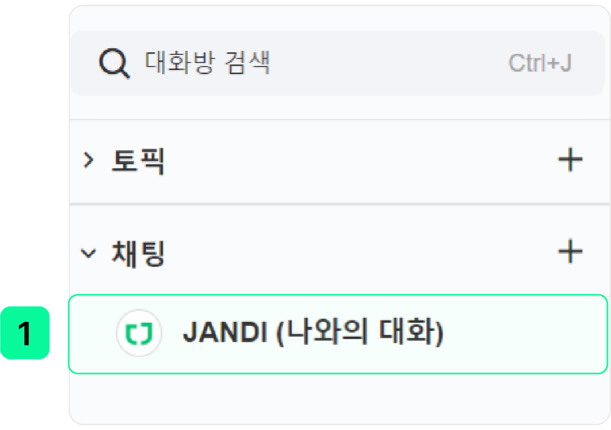 1. 전자결재 연동이 잘 되었는지 확인해볼게요. 잔디에 접속하여 좌측 채팅방 ‘JANDI (나와의 대화)로 이동해주세요.