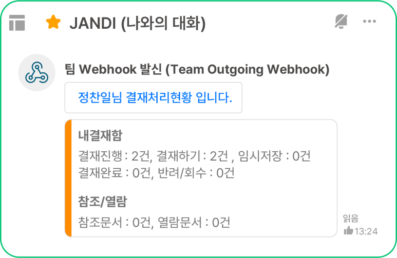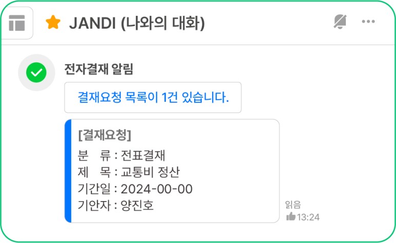 내가 궁금할 땐 언제든지, 장소 상관없이 전자결재 현황 알림을 받을 수 있는 방법이 있습니다. 업무용 메신저와 전자결재를 연동해두는 것인데요. 이 방법은 업무 효율을 높여주고 불필요한 시간 투자를 줄여주기 때문에 성장이 필요한 기업일수록 이 기능을 적극적으로 활용해야 합니다.