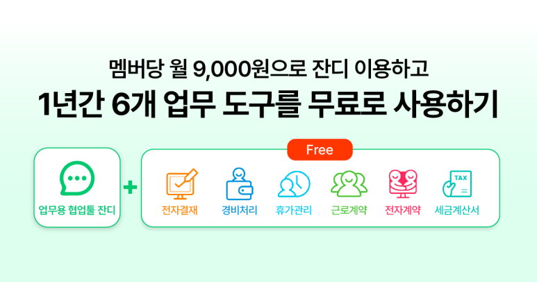 🎁 지원 혜택: 전자결재, 경비처리, 휴가관리, 근로계약, 전자계약, 세금계산서 6종 1년 무료