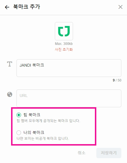 팀 북마크는 팀 구성원 모두가 확인할 수 있는 공개 북마크이고