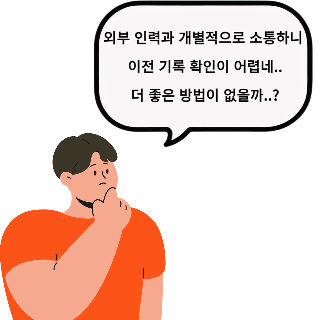 세금 신고, 회계 감사, 자문 등 외부 팀과의 소통이 필요한 업무가 존재합니다. 일반적으로 각 기업의 담당자는 개인 연락처를 공유하여 문자나 전화로 소통하는 경우가 많습니다. 그러나 외부 인력과의 소통을 보다 효율적으로 할 수 있는 방법에 대해 고민하게 되었습니다.