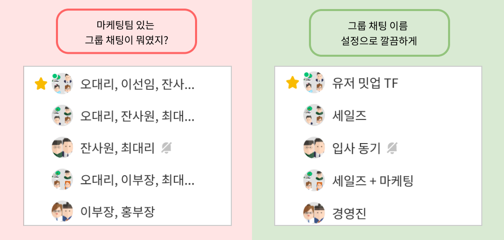 잔디는 그룹 채팅도 알아보기 쉽게 이름을 설정할 수 있으니까요!